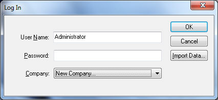 When the login of EBMS is shown, enter the customer-established user name and password. Select New Company.