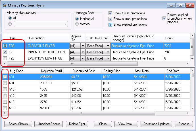 Always click Process after downloading new Flyers or making changes to existing Flyers. Since the promotions are entered with a range of dates, they do not need to be deletesd after the promotions expire.