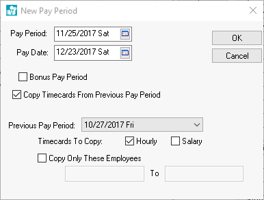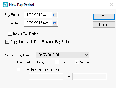 creating new pay periods. Check the Copy