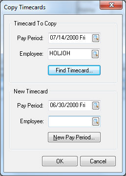 The pay period in which the new timecards will be placed must be established before the timecards can be copied. To copy individual timecards take the following steps: