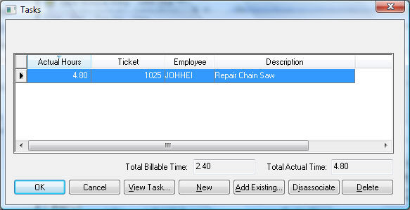 Highlight a task and click the Disassociate button to remove the task from the sales order without deleting the task.