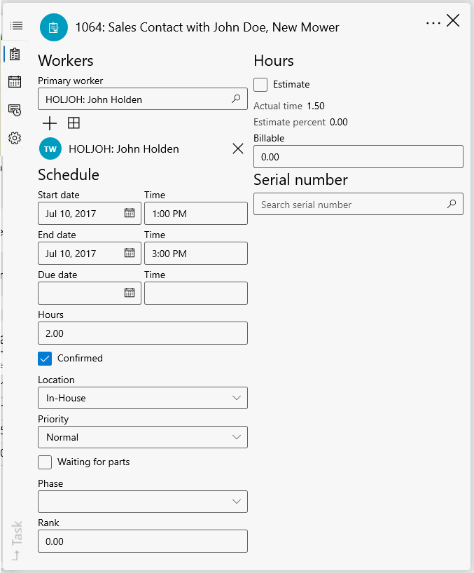 The schedule pane is used to change time and worker settings. Other task information can be changed using one of the following methods: