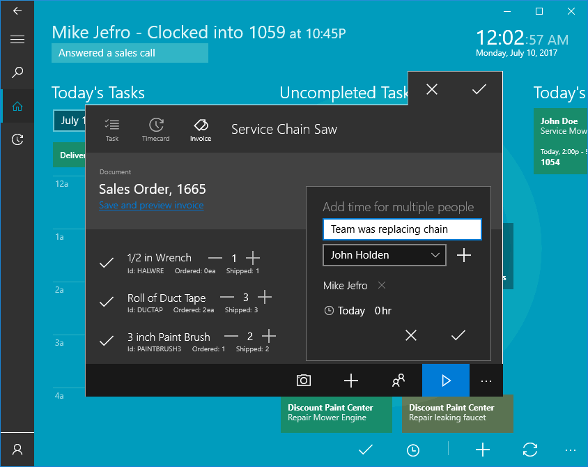 Open a task within MyTime and open a task or work order.