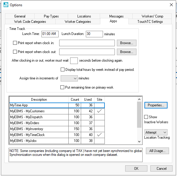 Open Labor > Labor Options > Apps settings as shown below: