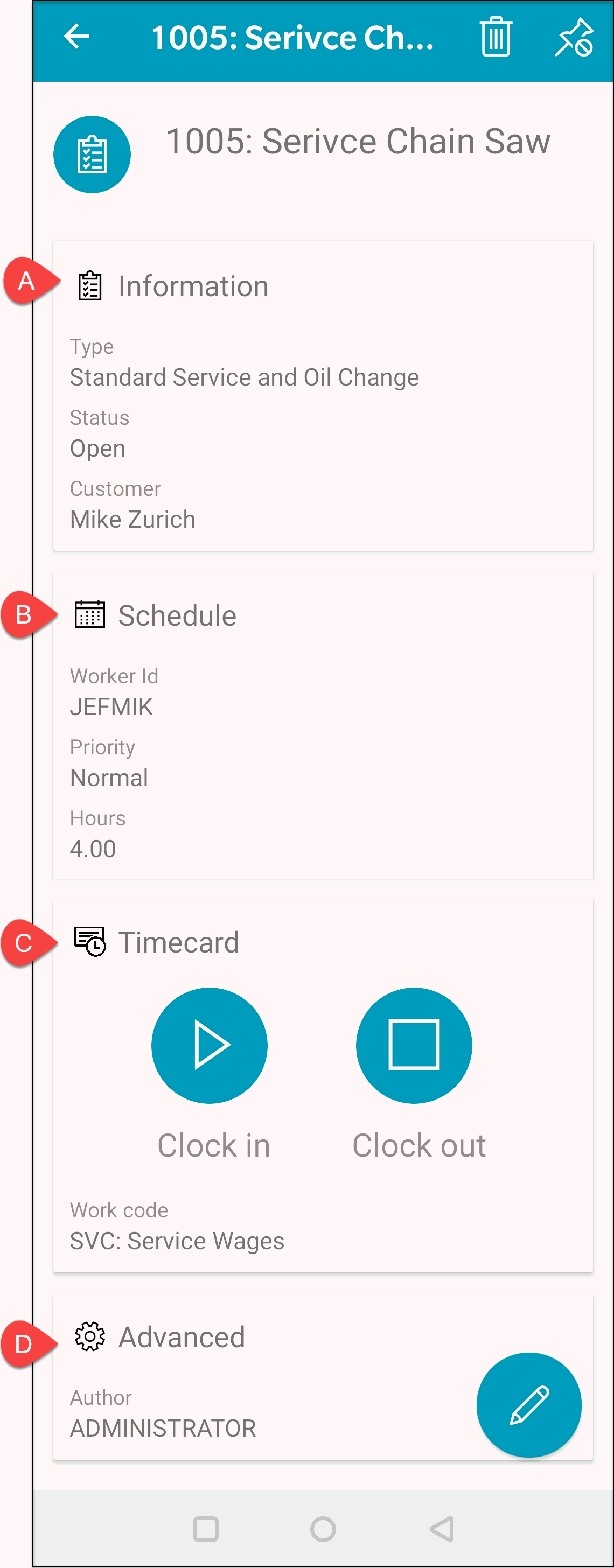 7. Tap any existing time records to open and edit the time records.