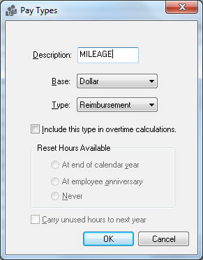 3. Enter an additional detail line within the employee’s timecard with a pay type as reimbursement pay (whatever the pay type description) and enter the reimbursement amount in the pay column.