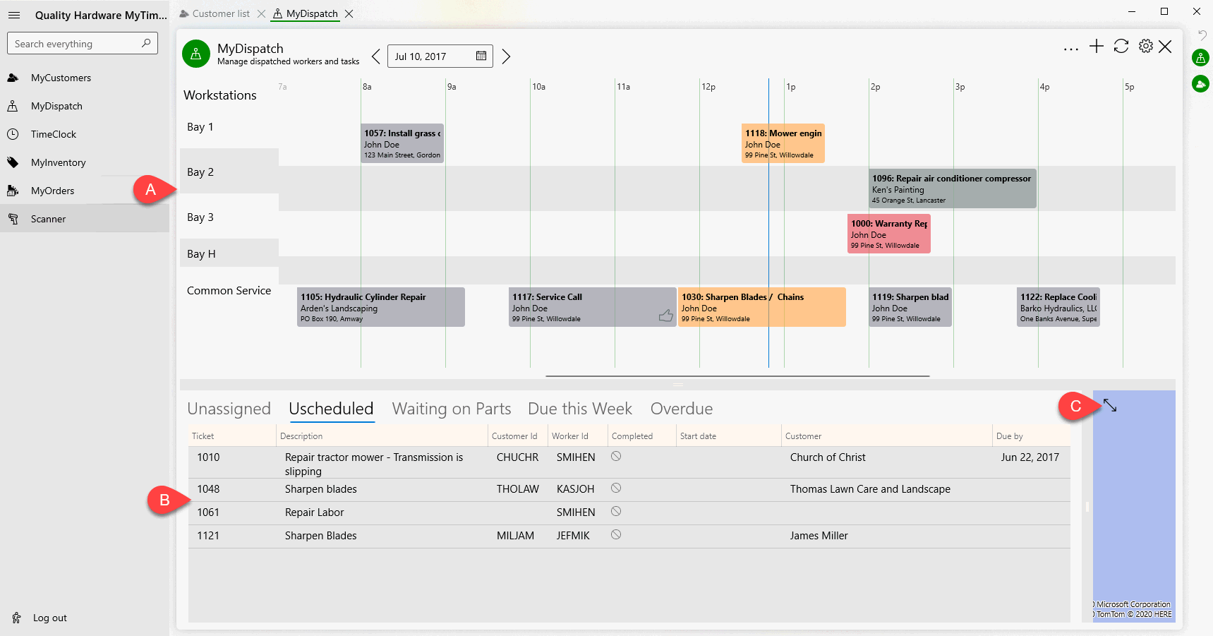 The MyDispatch app is a graphical option to scheduling tasks with the following 3 panes: