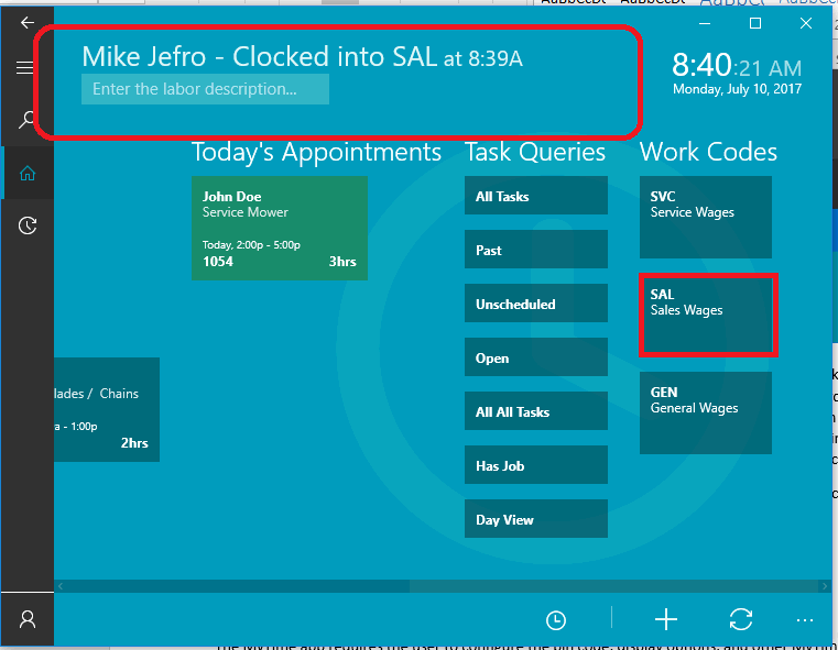 If this is the first task of the day, the user's login time will also be recorded using the same time. The system will log out of a previous task or work code if this clock in is not the first event of the day. Review the Creating a New Task section for more details on creating tasks.
