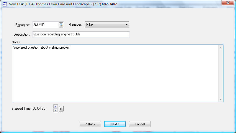 The phone task type is used for support or sales calls that are completed at the time the task is created. The task time is metered at the time the task wizard is launched until the task wizard is completed. This task type is to log phone calls with workers. Complete the following steps to create a phone task: