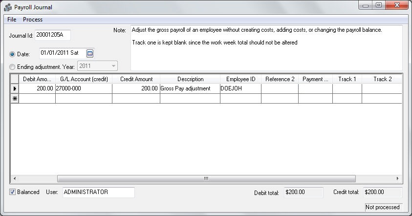 Enter a zero value into the Debit Amount and the Credit Amount columns if the gross pay should not be adjusted.