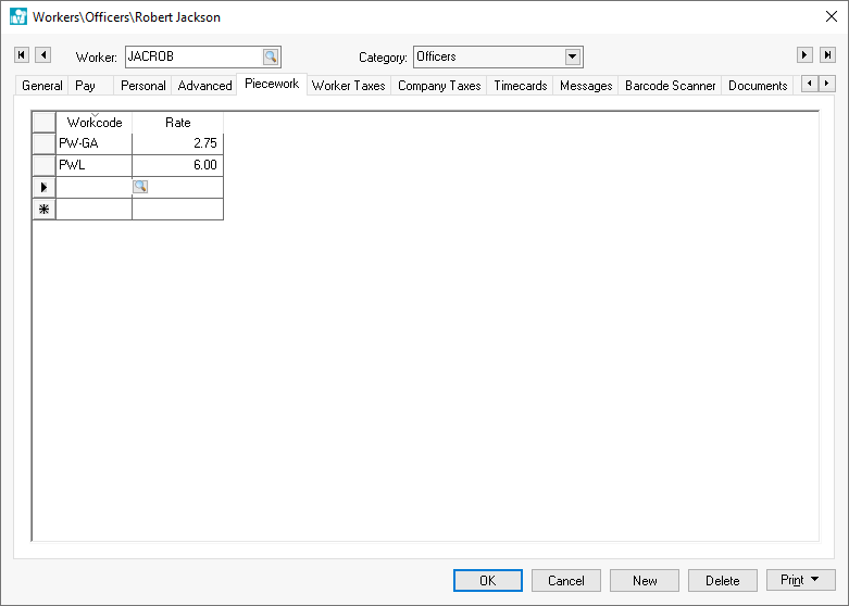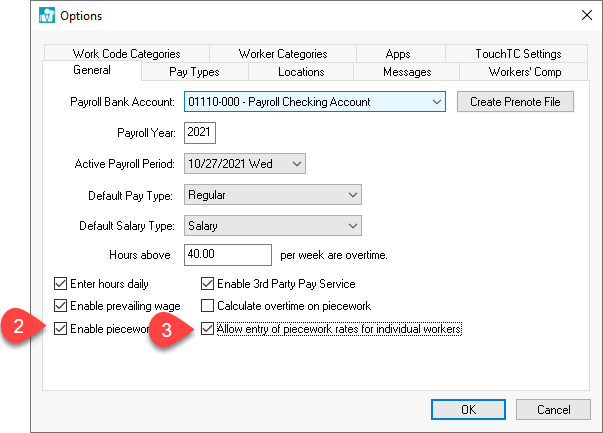 Piecework pay may vary by employee. This section can be ignored if the piecework pay is consistent for each work code. Review the Piecework Pay > Creating Piecework Work Codes section for more details on entering the piecework pay within the work code.