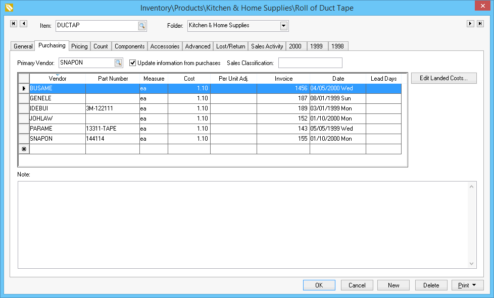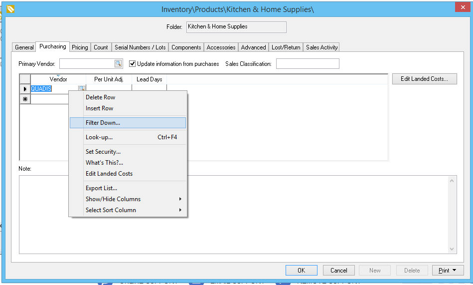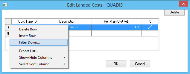 Repeat these steps for any additional landed cost adjustments. Click OK to return to the Vendor purchasing list.