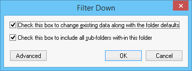 Click on the Filer Down option on the context menu as shown above to open the following dialog: