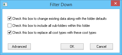 The 2nd option on only be enabled if you wish to filter down the landed cost types to all items within sub-folders. This option should be disabled to only set the items within the current folder.