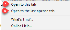 Select Open to this tab to always open the selected tab when the dialog is opened.