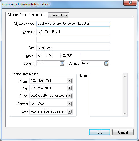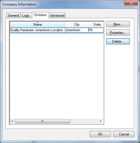 If the Single Profile option is not selected for either sales or expense than a Company Divisions button will appear. Click the Company Divisions button to open the following dialog:
