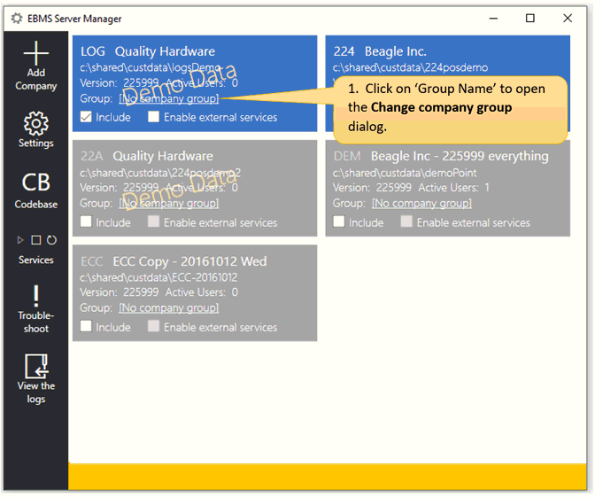 To enable only companies with a specific 'Group Name' to show in the EBMS login: