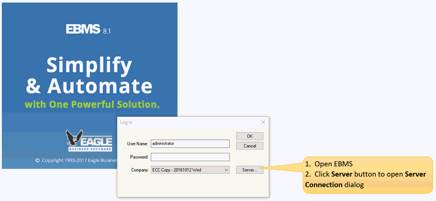 Example Scenario: A company owner has separate companies set up to aid in separating the accounting and expenses for business and personal accounting. The administrator may wish to limit the Login dialog on an employee's computer to show only the business company(s).