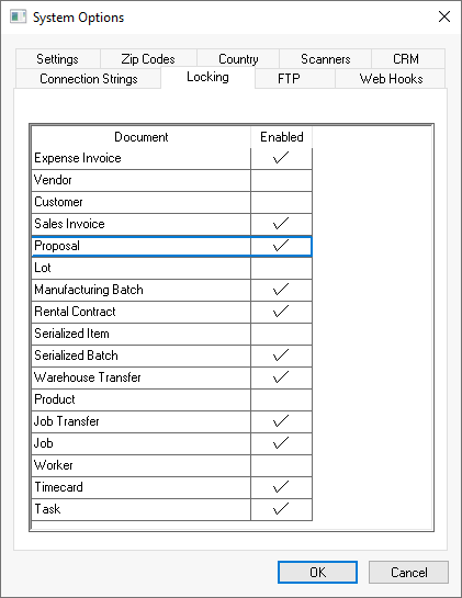Select the Enabled option to enable lock warnings. Large documents with extensive data changes or a document with a high chance of conflicts should have this option checked. Click OK to enable.