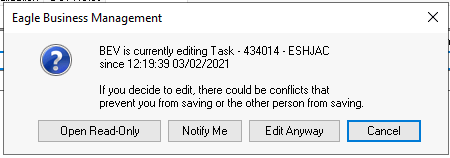Edit Anyway: This option risks the chance of common data being changed by multiple users.