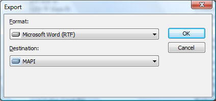 The Destination setting should be set as Microsoft Mail (MAPI).