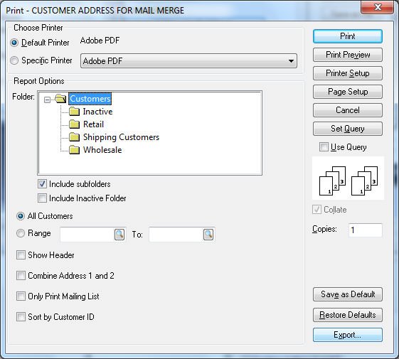 Review the Exporting to CSV files section for detailed instructions on a customer mail merge process.