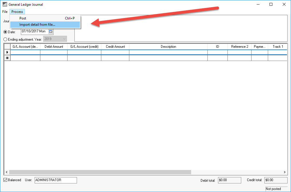 Open the entry screen that you wish to import such as the journal screen shown above.