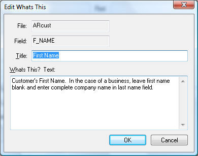 The What's This dialog will show the database File and Field names.