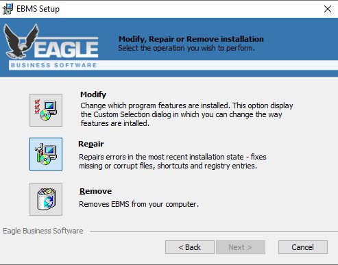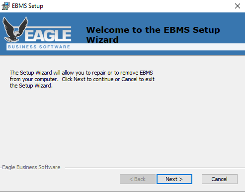 Launch the EBMS Setup.exe file from the ClientInstaller folder located on the server.
