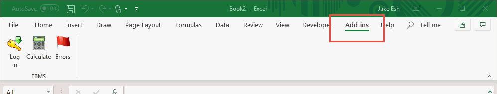 Launch MS Excel to verify that the EBMS Add-On has been installed into your Excel program. Continue with the following steps if the Add-Ins option does not show within Excel.