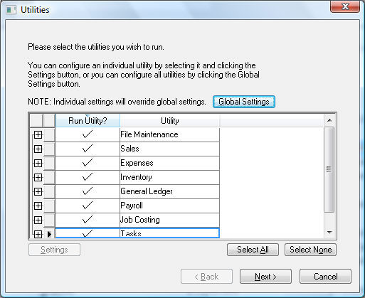 Click the Next button to start utilities. You can press the cancel button to abort most utilities.