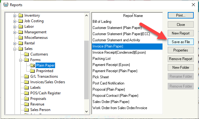 Highlight the desired report and click Save as File as shown below: