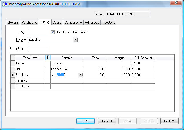 Additional levels can be added to the option list. Contact an EBMS consultant for details.