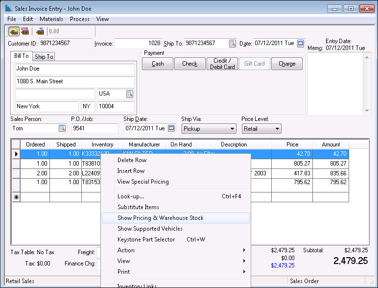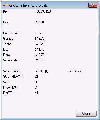 The EBMS system allows the user to check Keystone stock and cost right from the POS.