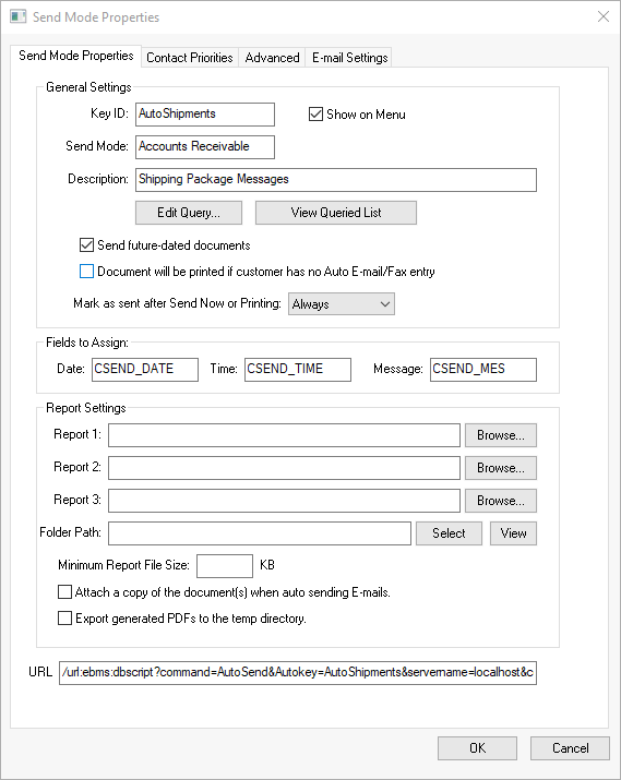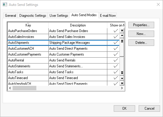 1.  Select File > Auto Send Options > Auto Send Modes tab from the main EBMS menu to open the following list: