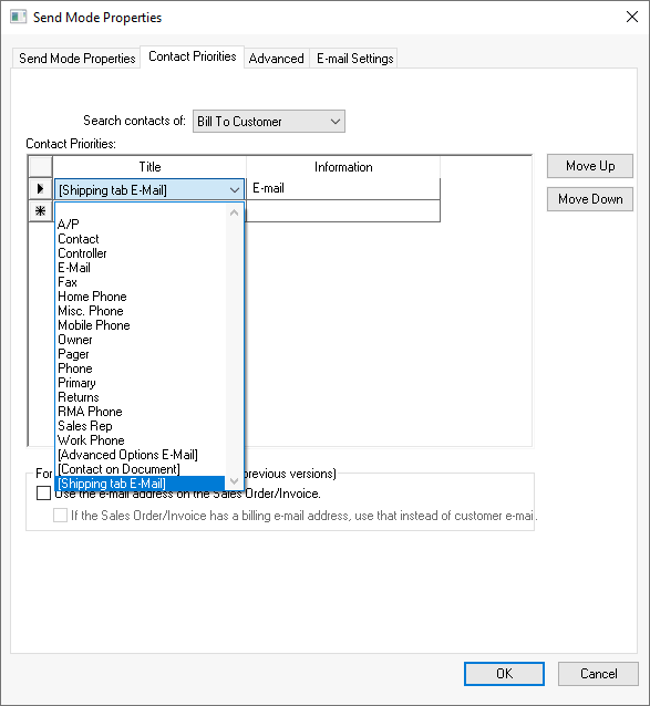 16. Set the (Shipping tab E-Mail) to send the message to the email shown on the shipping tab of the sales order.  Review Freight and Shipping Tools > Shipping and Tracking Freight for details on the content of the Shipping tab.