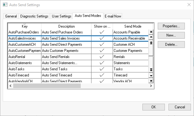 from the main EBMS menu and click on the Auto Send Modes tab: