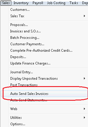 Individually: Sales orders or invoices can be sent individually from the invoice menu using hot keys. Review Send Now Tool for instructions to send individual documents.