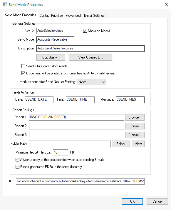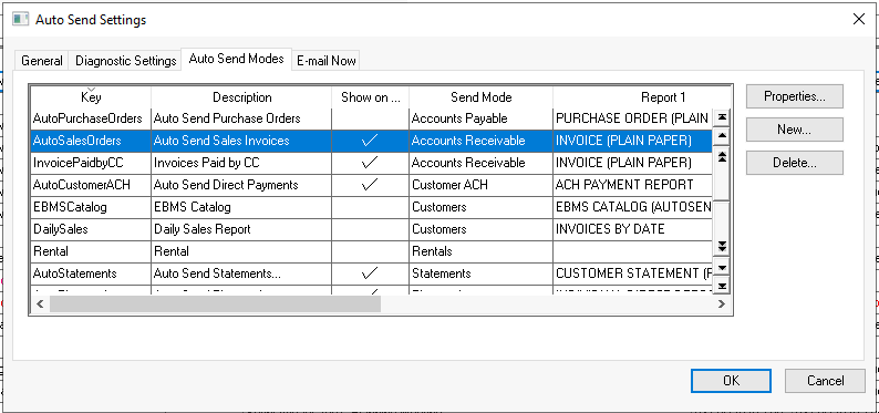 > Auto Send Options > Auto Send Modes from the main EBMS