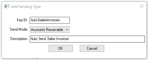 Each Auto Send Mode requires a unique Key Id. This Key ID should be a simple descriptive code that does not include spaces or symbols.