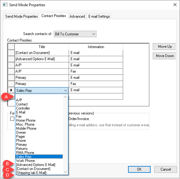 If the customer record does not contain any Contact Types which match the entries in the Contact Priorities list, the system will either ignore the order or print it, depending on your setup in General Settings.