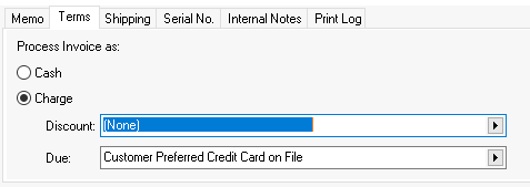 Set the term within a customer record for all payments for a customer: This option should be used sparingly since a credit card will be used for payment throughout the EBMS software. Review the Customers > Changing Customer Information – Terms section for details on changing the customer’s default terms.