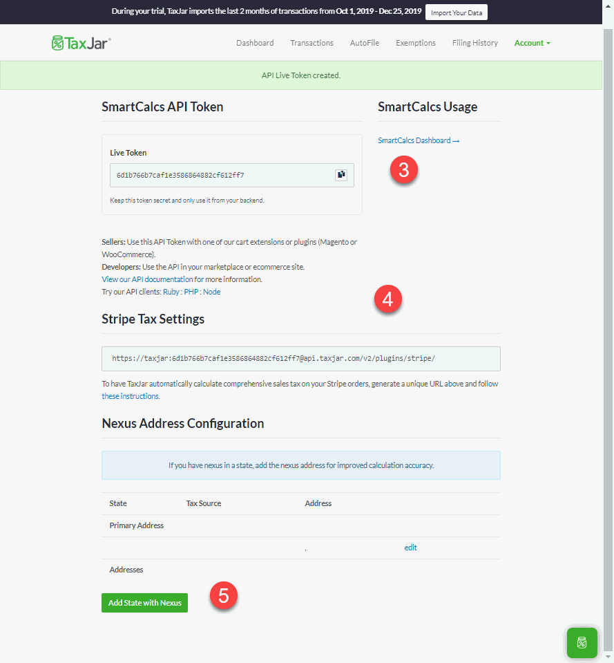 Enter the TaxJar API Key that is communicated during the subscription steps