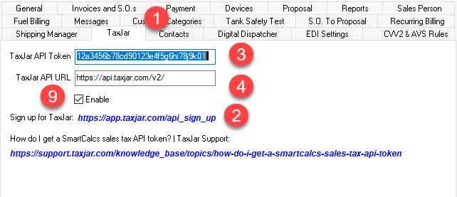 > Options > TaxJar tab from the main EBMS menu. The EBMS