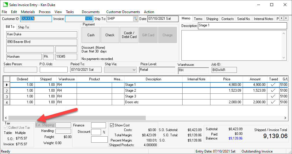 Sales invoice that contain inventoried product: Review [Financials] > Job Costs > Sales Invoice for details on applying cost of goods sold from a sales invoice to a job.