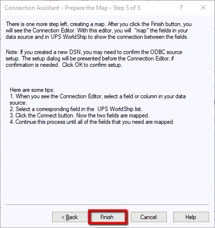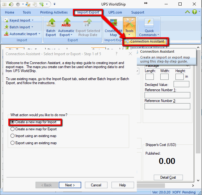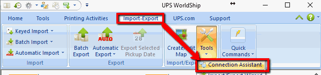 Configure the communication to pull shipping information from the EBMS software: Complete the following steps to launch the UPS WorldShip Connection Assistant to map communication to import shipping information from EBMS: