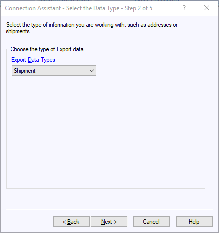 Data Type option Shipment and