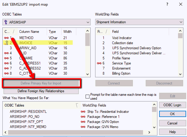 Import map will read from the EBMS ARSMSHIP & ARSHIPDET Tables via the ODBC Connection and import into WorldShip