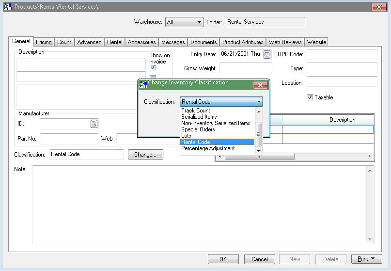 The Classification setting should be set to Rental Code. Click on the Change button to change the Classification as shown above.