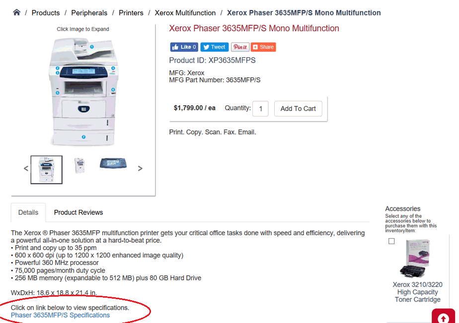 Phaser 3635MFP/S Specifications
